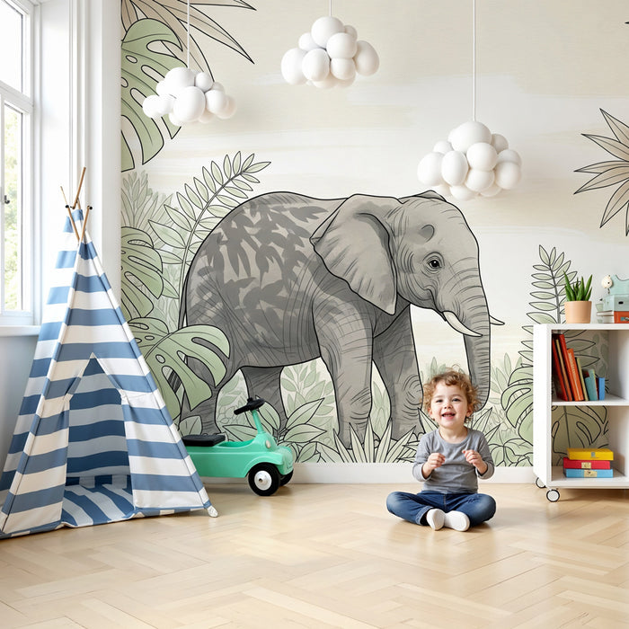 Animaux Enfant Feuillage Jungle Vert Éléphant