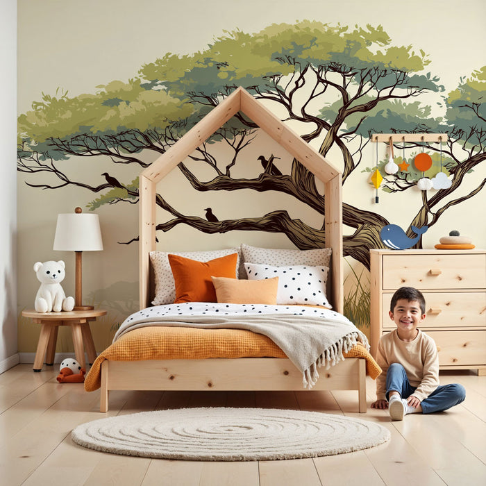 Dětská tapeta | Majestátní strom a ptáci