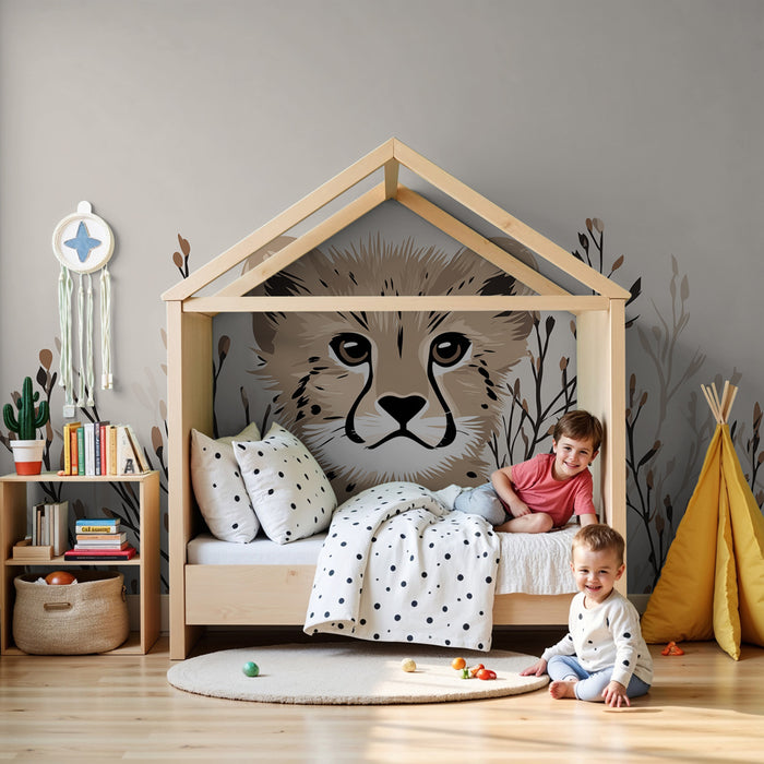 Přineste do dětského pokoje dotek dobrodružství a jemnosti s tímto papírovým tapetou pro děti, která zobrazuje roztomilého malého leoparda. Jemně se vynořující mezi stylovými větvemi, tento poutavý motiv podněcuje fantazii a přenáší malé do divokého a hravého světa.