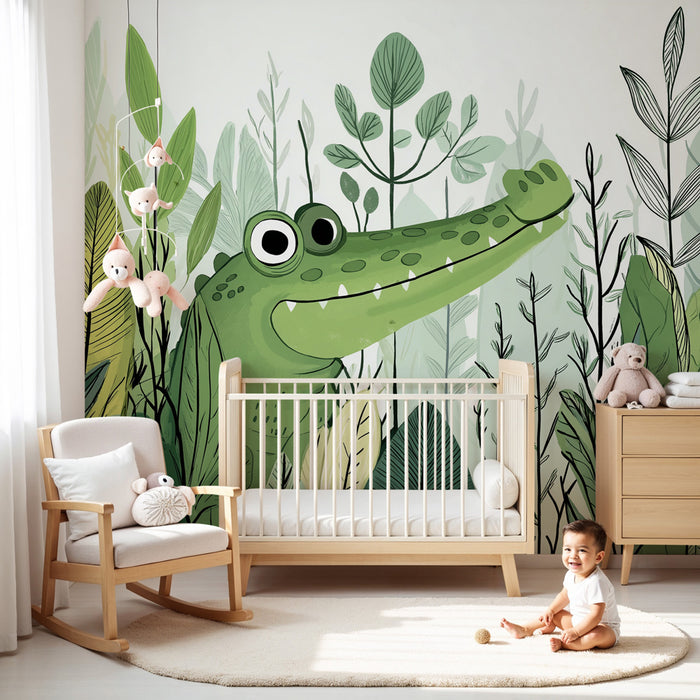 Dětská pokojová tapeta | Přátelský krokodýl uprostřed listů