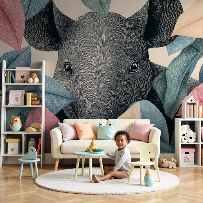 Přidejte do dětského pokoje něco originálního s tímto dětským tapetou, které zachycuje roztomilé zvíře skryté mezi barevnými listy. Tento inspirativní umělecký mural vytváří kouzelný svět, kde každý detail láká k dobrodružství a objevování.