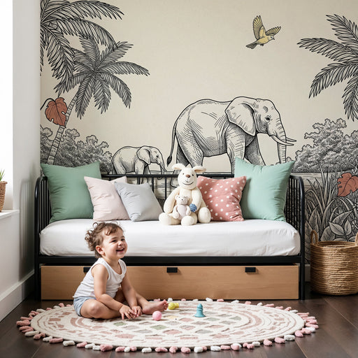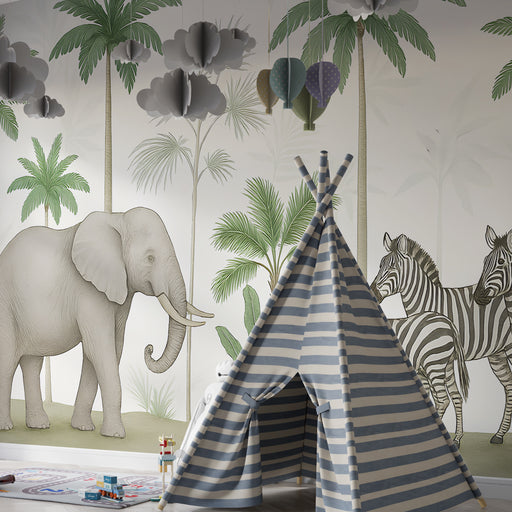 KidsWallPřetvořte pokoj vašeho dítěte na místo dobrodružství s tímto papírovým tapetou pro děti, která zobrazuje majestátní slony pohybující se v bujném pr...
