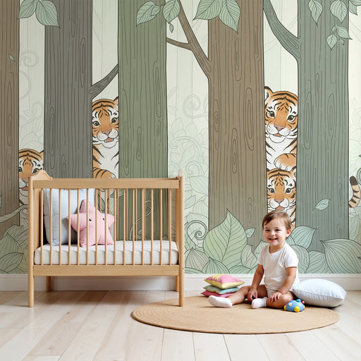 KidsWallPonořte se do světa tajemství a dobrodružství s tímto tapetou pro děti, která zobrazuje roztomilé tygry skryté mezi stromy. V dekoru pralesa se ty...