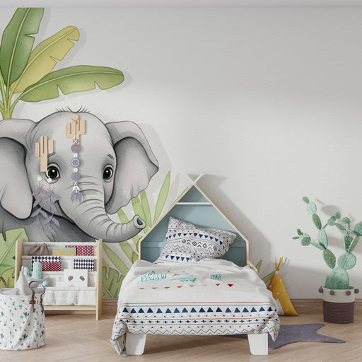 KidsWallPřidejte do dětského pokoje nádech něhy a dobrodružství s touto tapetou pro děti, která zobrazuje roztomilého malého slona skrytého mezi bujnou veg...
