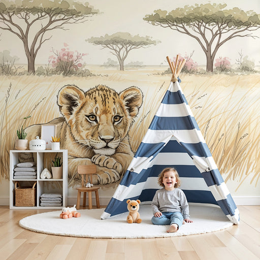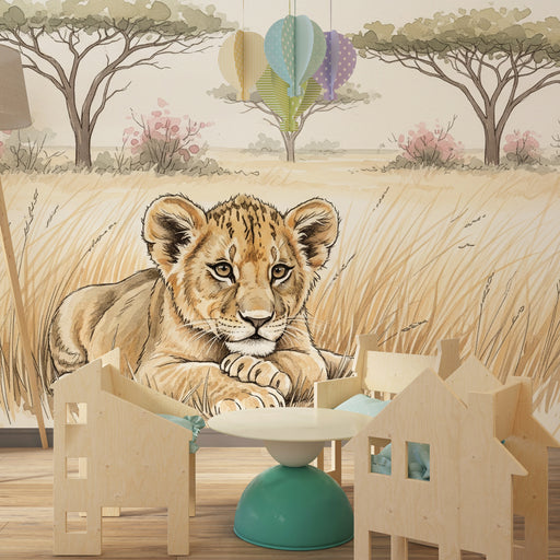 KidsWallProměňte pokoj vašeho dítěte v pravé safari s tímto papírovým tapetou pro děti, který zobrazuje roztomilého lva, který odpočívá na savaně. Tento ok...