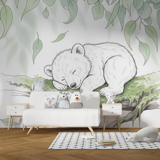 KidsWallVytvořte jemný a uklidňující svět v dětském pokoji s tímto papírovým tapetou pro děti, která zobrazuje roztomilého spícího medvídka na větvi pokryt...
