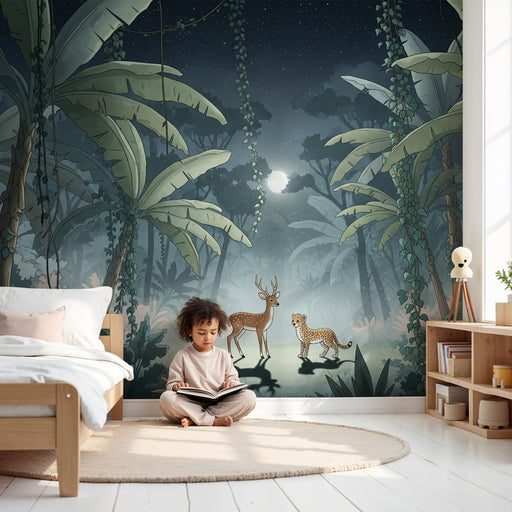 KidsWallProměňte pokoj vašeho dítěte v opravdový útočiště klidu s tímto dětským tapetou. Ilustrující cestu džunglí osvětlenou jemným světlem zapadajícího s...