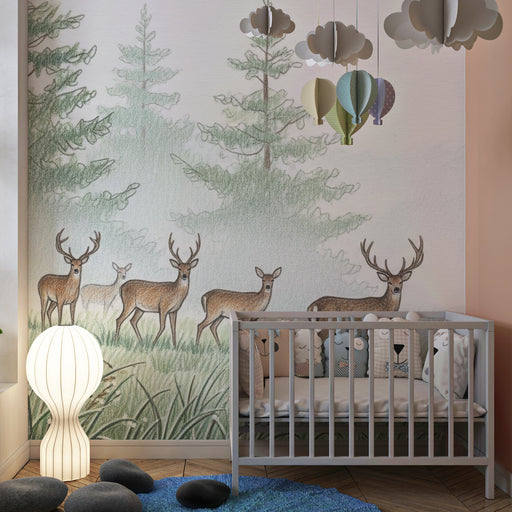 Zobrazit celý detailDětská pokojová tapeta | Jeleni v mlhavém lese