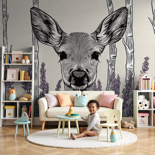 KidsWallPředělejte pokoj vašeho dítěte s tímto jedinečným tapetou, která zobrazuje majestátní jelen vycházející z jemných levandulových stonků. Kombinace n...