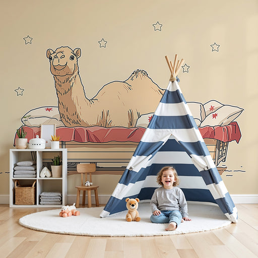 KidsWallTransformujte pokoj vašeho dítěte s tímto zábavným a poutavým tapetou. V srdci hravé atmosféry odpočívá okouzlující velbloud na lůžku zdobeném měkk...