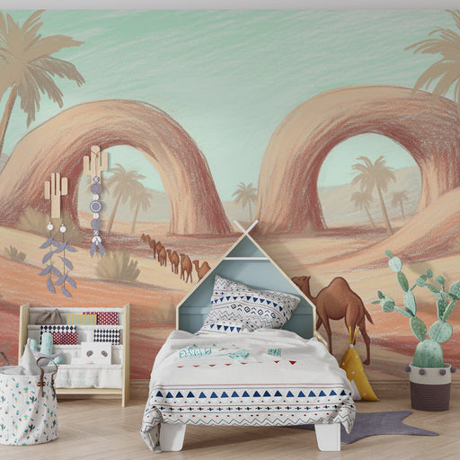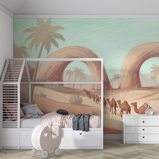 Zobrazit celý detailDětská pokojová tapeta | Tajemná poušť s velbloudy