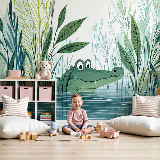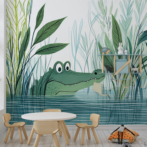 KidsWallPonořte se do fascinujícího světa divoké fauny s tímto papírovým tapetou pro děti, která zobrazuje zvědavého aligátora vynořujícího se z živé vodn...