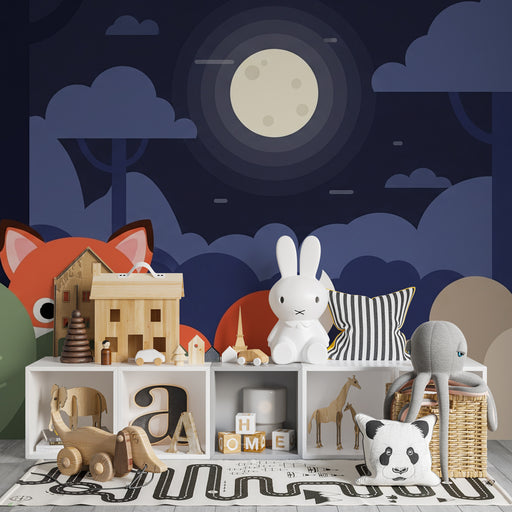 KidsWallProměňte pokoj svého dítěte v opravdový útočiště klidu s tímto tapetou pro děti, která zobrazuje lesní zvířata v měsíčním světle. Šibalský lišák, r...