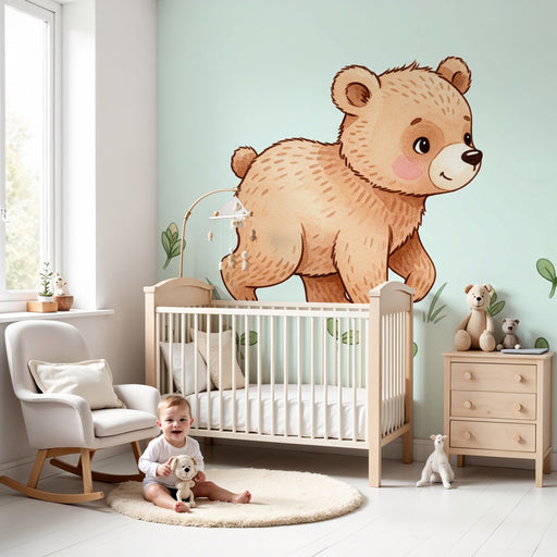KidsWallProměňte pokoj vašeho miminka v něžné útočiště s tímto papírovým tapetou pro děti, která zobrazuje roztomilého medvídka, který si hraje na zeleném ...