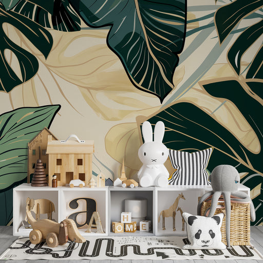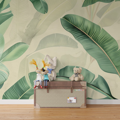 KidsWallProměňte pokoj svého dítěte v tropický ráj s tímto tapetou pro děti zdobenou nádhernými exotickými listy. V uklidňujících odstínech zelené na béžov...