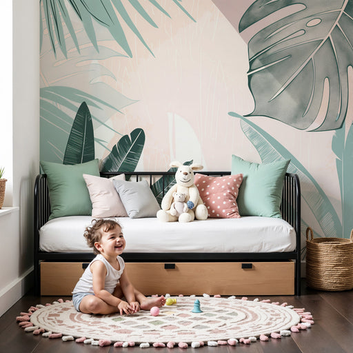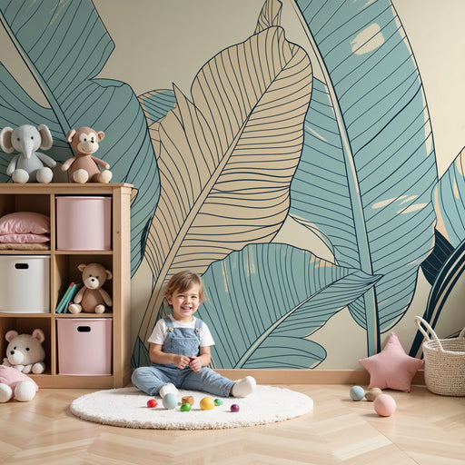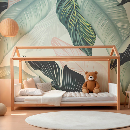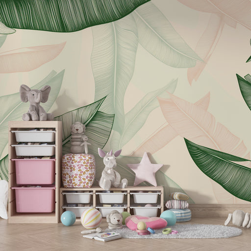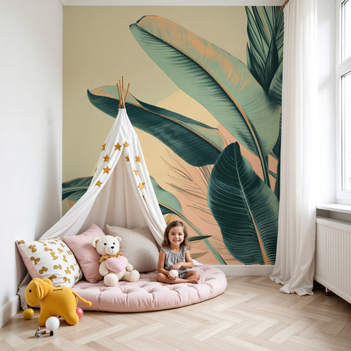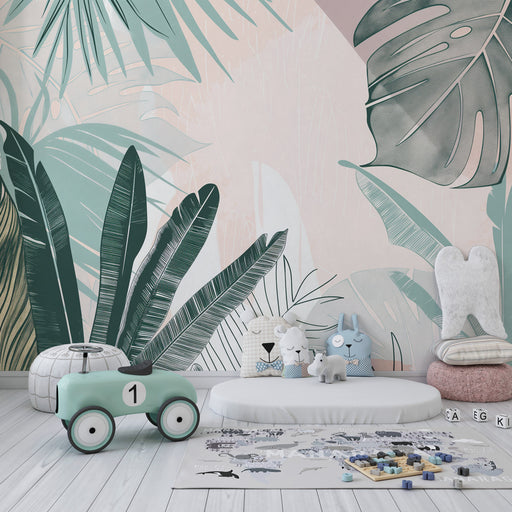 KidsWallTransformujte svět svého dítěte s tímto tapetou do dětského pokoje s motivy tropických listů. Tento rafinovaný design má paletu jemných barev od ko...