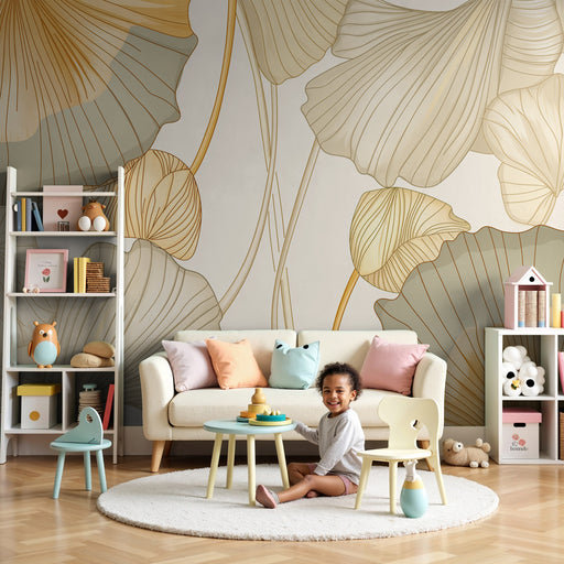 KidsWallProměňte dětský pokoj vašeho dítěte v uklidňující prostor plný jemnosti s tímto tapetou pro děti s motivy listů jinanu. Teplé tóny béžové a zlaté v...