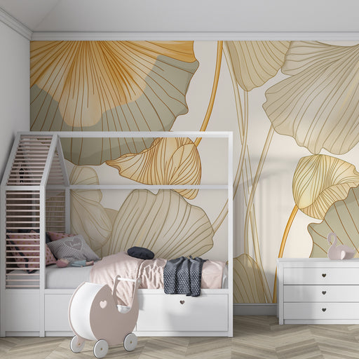 Zobrazit celý detailDětská pokojová tapeta | Zlaté a jemné listy jinanu
