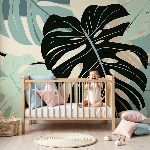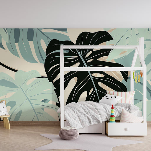 KidsWallVyzdobte dětský pokoj s tímto papírovým tapetou inspirovaným přírodou. Velké listy monstery v odstínech jemné zelené a hluboké černé vytvářejí láka...