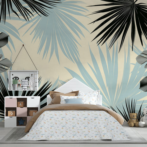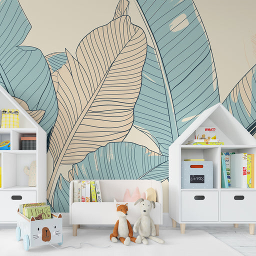 KidsWallProměňte pokoj vašeho dítěte v oázu klidu s tímto tapetou pro děti, která zdůrazňuje stylové motivy tropických listů. Uklidňující odstíny modré a b...