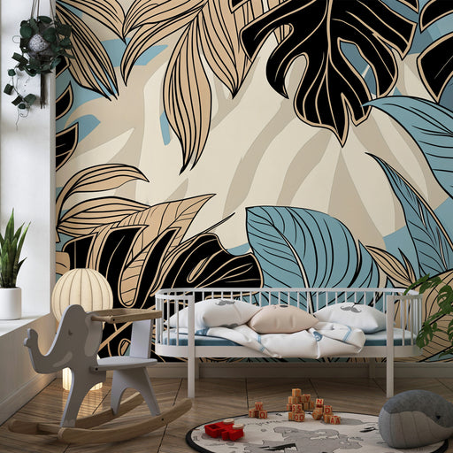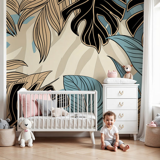 Zobrazit celý detailDětská pokojová tapeta | Tropické listy a moderní motivy