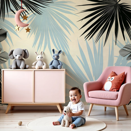 KidsWallProměňte pokoj svého dítěte v opravdový útočiště klidu s tímto tapetou pro dětský pokoj zdobenou nádhernými tropickými listy. Jemné vzory v černobí...