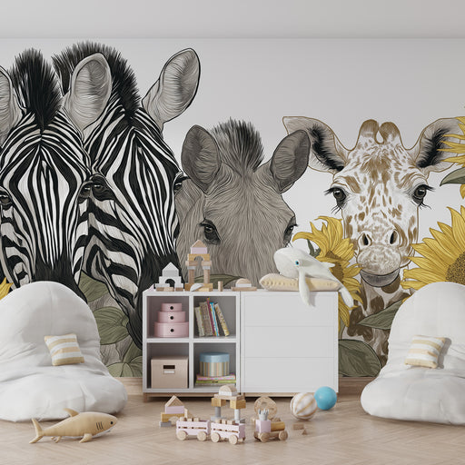 Zobrazit celý detailTapeta dětského pokoje | Zvířata savany a slunečnice