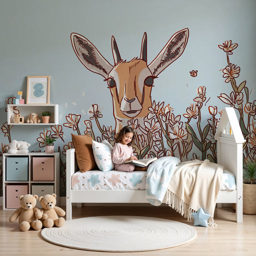 KidsWallVyzdobte pokoj svého dítěte tímto tapetou pro děti, která zobrazuje roztomilou antilopu vystupující z pole něžných květů. Tento uklidňující a příro...