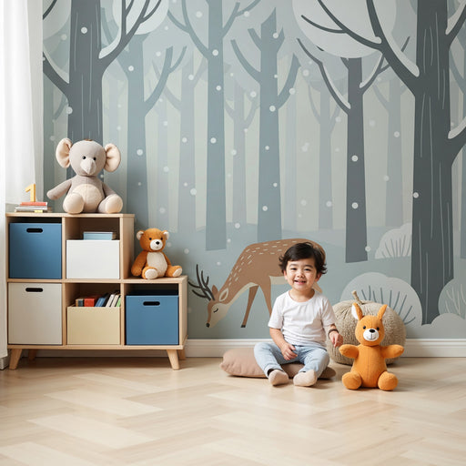 KidsWallPonořte své dítě do kouzelného světa s tímto tapetou do dětského pokoje, něžným pozváním ke snění. Představte si zasněžený les, kde graciózní laně,...