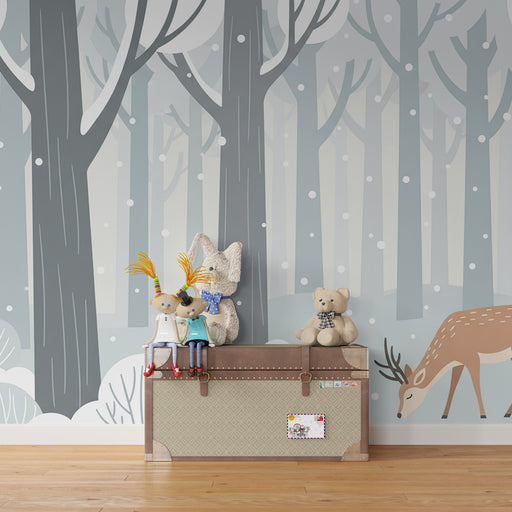 KidsWallProměňte pokoj vašeho miminka v klidné místo s tímto papírovou tapetou pro děti, která zobrazuje roztomilého laně vystupujícího z v zasněženém lese...