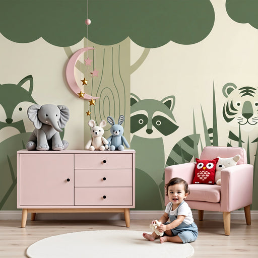 KidsWallProměňte pokoj vašeho dítěte v opravdový útočiště klidu s tímto papírovým tapetou pro děti, zobrazujícím skupinu lesních zvířat obklopených jemným ...