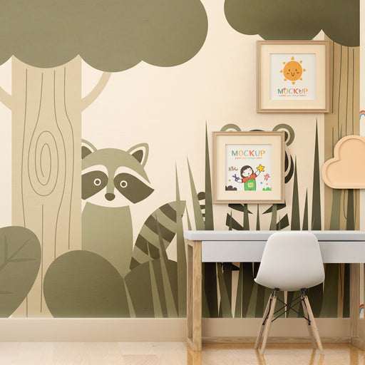 KidsWallProměňte pokoj vašeho dítěte v útočiště klidu s tímto papírovým tapetou pro děti, které zobrazuje roztomilá zvířata pohybující se v stylizovaném le...