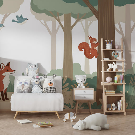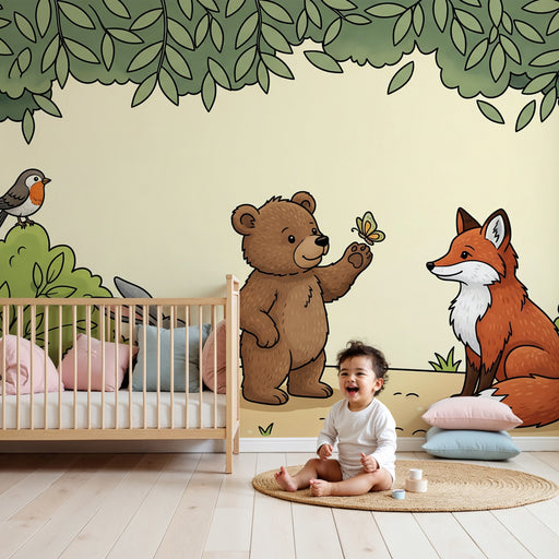 KidsWallVytvořte kouzelný svět v dětském pokoji s tímto papírovým tapetou pro děti, která zobrazuje skupinu roztomilých lesních zvířat. Přátelský lišák, Zv...