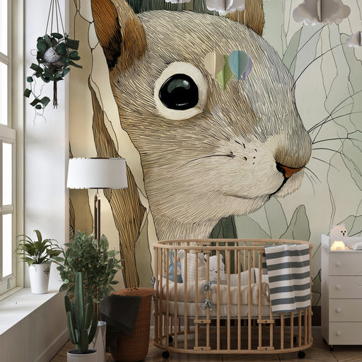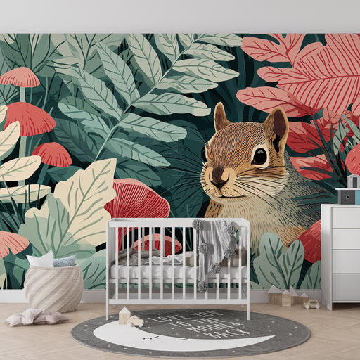 KidsWallPřidejte do dětského pokoje dotek přírody s tímto tapetou pro děti, která zobrazuje roztomilého veverku skrytého mezi listím. Jemná kompozice kombi...