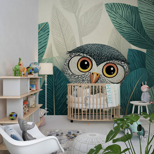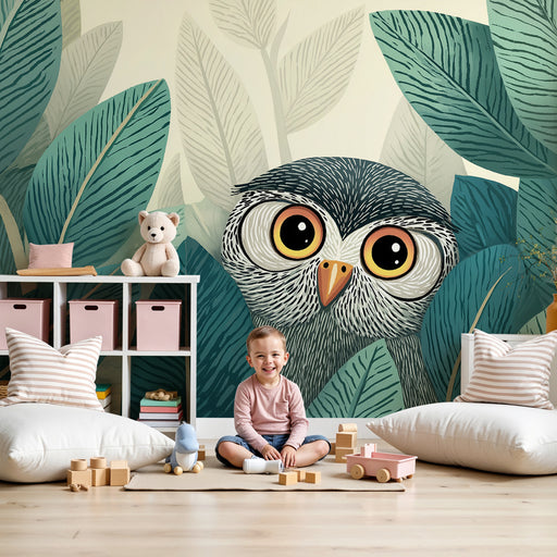 KidsWallOživte pokoj vašeho dítěte s tímto papírovým tapetou pro děti, který zobrazuje poutavého sovy skrytého mezi bujnými listy. Ilustrace hraje s uklidň...