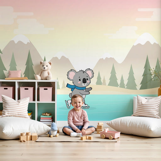 KidsWallProměňte pokoj vašeho dítěte v pohádkový svět s tímto půvabným tapetou s roztomilým koalou na bruslích. Pohybující se na zamrzlém jezeře obklopeném...