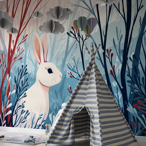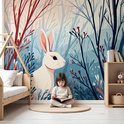 KidsWallProměňte pokoj svého dítěte v kouzelný prostor s tímto papírovým tapetou pro děti, která zobrazuje roztomilého králíka uprostřed zimního lesa. Jemn...