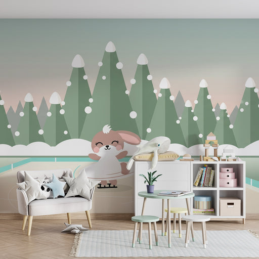 KidsWallProměňte pokoj svého dítěte v kouzelnou zimní krajinu s tímto tapetou pro děti. V srdci klidné scény elegantně klouže roztomilý malý králíček po za...