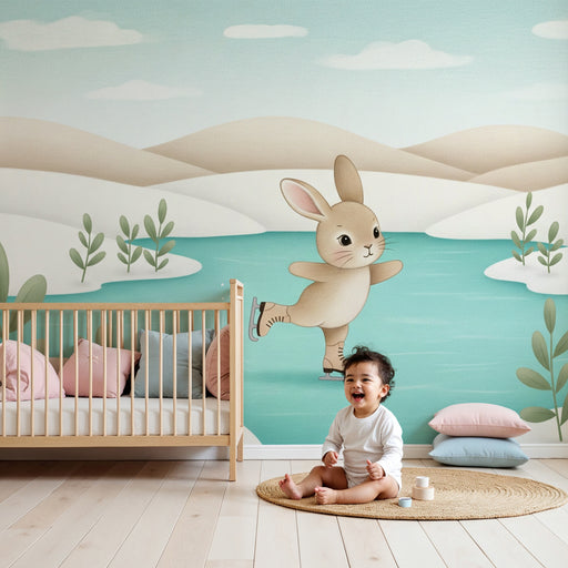 KidsWallTransformujte dětský pokoj svého dítěte tímto papírovým tapetou pro děti zobrazujícím roztomilého zajíce bruslícího na třpytivém kluzišti. Pod hvěz...