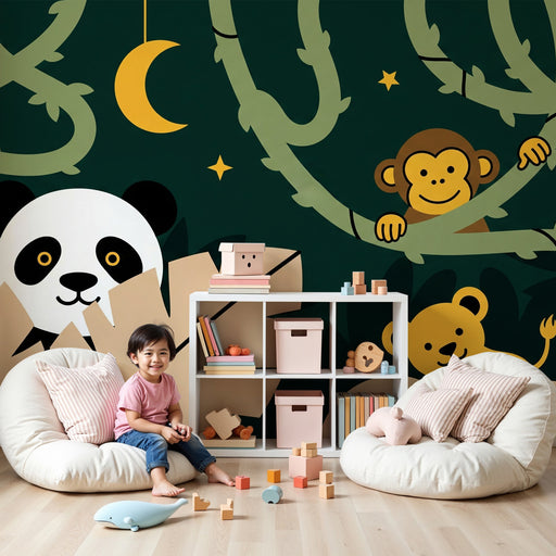 KidsWallProměňte pokoj vašeho dítěte v opravdové útočiště džungle s tímto papírovým tapetou pro děti, zobrazujícím roztomilá zvířata v kouzelném nočním pro...