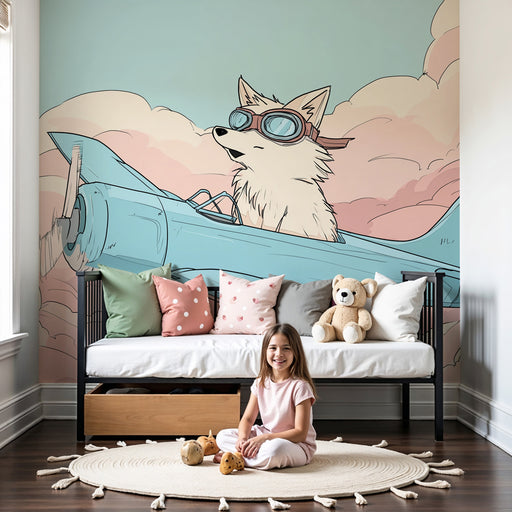 KidsWallNastupte na letecká dobrodružství s tímto papírovým tapetou pro děti, který zobrazuje dobrodružného psa za řízením barevného letadla. Plující skrz ...
