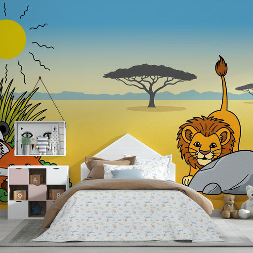 KidsWallProměňte pokoj vašeho dítěte v klidnou krajinu s tímto tapetou pro děti, která představuje roztomilého malého lva v pouštním prostředí. Pod jasným ...