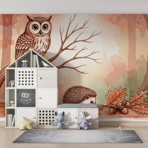 Zobrazit celý detailDětská tapeta | Sovička a ježek v lese