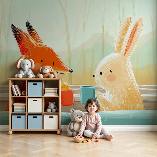 KidsWallProměňte pokoj vašeho dítěte v kouzelný prostor s tímto tapetou pro děti, která zobrazuje zvědavého lišáka a přátelského králíka setkávající se na ...