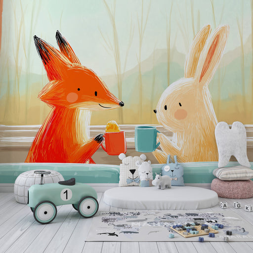 KidsWallPřeměňte pokoj vašeho dítěte v útočiště něhy s tímto tapetou pro děti, která zobrazuje lišku a zajíce, kteří sdílejí okamžik důvěrnosti. Tito dva z...