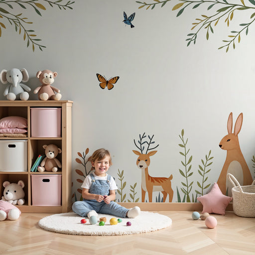 KidsWallVytvořte pokoj vašeho dítěte s tímto papírovou tapetou kouzelného lesa, která zobrazuje roztomilá zvířata, jako jsou králíci, laně a ptáci obklopen...