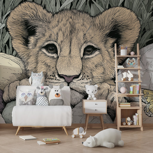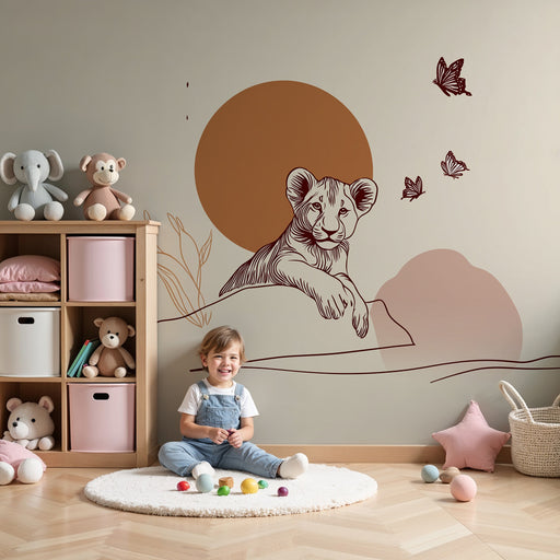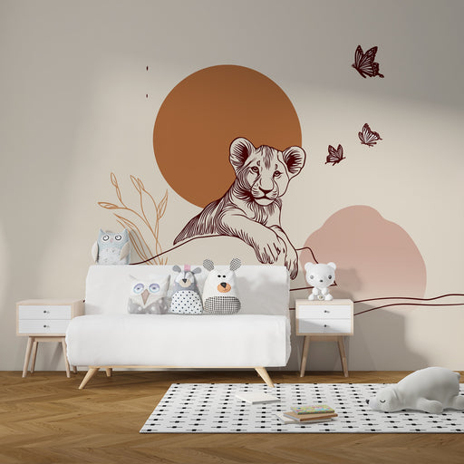 Zobrazit celý detailKids room wallpaper | Little curious lion and butterflies