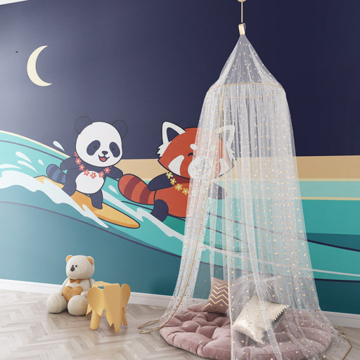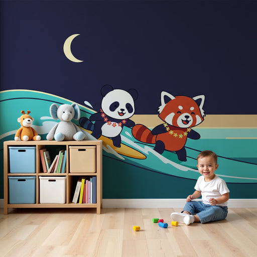KidsWallNaloděte své dítě na veselou vodní dobrodružnou cestu s tímto papírovým tapetou pro děti, která zobrazuje pandu a rudého pandu surfování na velkých...