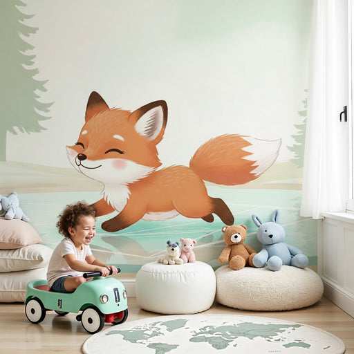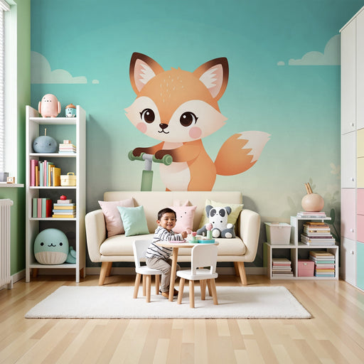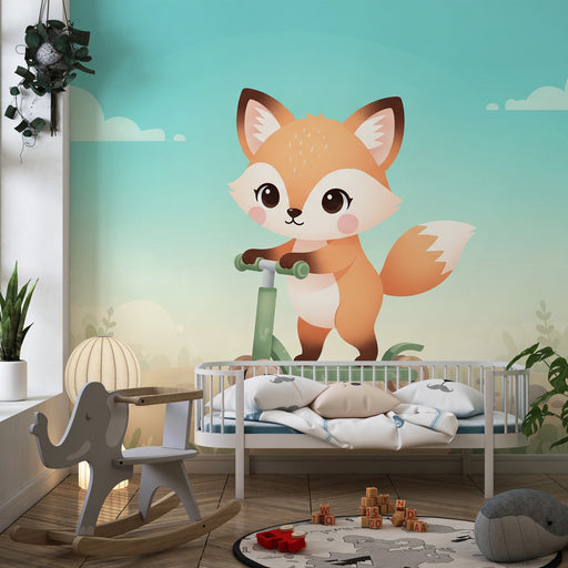 KidsWallProbudte dobrodružství v dětském pokoji s tímto roztomile navrženým dětským tapetou, zobrazujícím šibalského lišáka na koloběžce. V klidném přírodn...