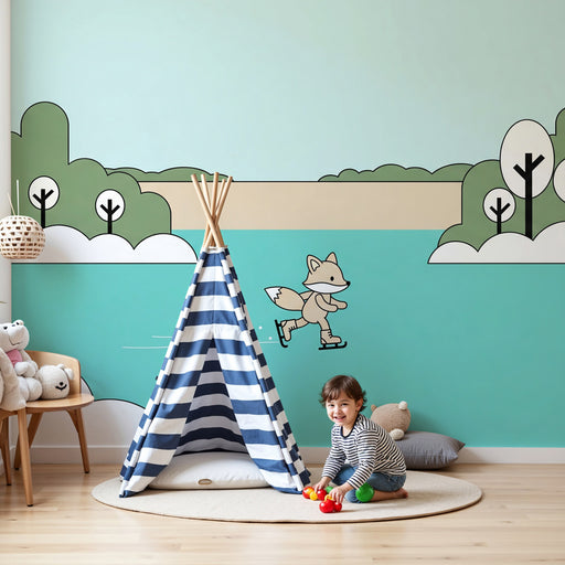 KidsWallProměňte pokoj vašeho dítěte v pohádkový svět s tímto papírovým tapetou pro děti, které zobrazuje roztomilého lišáka bruslícího na zamrzlém jezeře....
